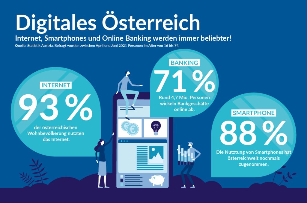 DigitalWirtschaft Zahlen & Fakten der Wirtschaft von florian.fuchs@awg-verlag.at 22. Januar 2022 22. Januar 2022 3 Minuten lesen 130 Überwiegend zufrieden Die letzten Jahre waren zweifellos keine einfache Zeit. Home Office, Kurzarbeit – im letzten Jahr mussten sowohl Arbeiternehmer*innen als auch ihre Vorgesetzten flexibel auf die neuen Herausforderungen reagieren. Dennoch haben Österreichs Unternehmen insgesamt gut auf die Corona-Krise reagiert und es ist ihnen gelungen, die Zufriedenheit ihrer Beschäftigten auf einem hohen Maß zu halten. Denn die Arbeitenden sind auch aktuell glücklich in ihrem Job. So geben mehr als 9 von 10 an (eher) zufrieden in ihrem Unternehmen zu sein. Damit ist der Wert im Vergleich zum Jahr 2019 sogar gestiegen: Hier waren es noch 86,8%. Digitale Features immer beliebter Insgesamt 93% der österreichischen Wohnbevölkerung zwischen 16 und 74 Jahren nutzten das Internet in den letzten drei Monaten vor der Befragung, die zwischen Mai und Juni 2021 durchgeführt wurde. Das entspricht rund 6,1 Millionen Personen und bedeutet gegenüber dem Vorjahr einen Zuwachs um rund 5 Prozentpunkte. Auch Online-Banking-Anwendungen erfreuen sich in Österreich weiterhin steigender Beliebtheit. Rund 4,7 Mio. Personen im Alter von 16 bis 74 Jahren haben in den letzten drei Monaten vor der Befragung ihre Bankgeschäfte online abgewickelt. Das entspricht 71% der Bevölkerung dieser Altersgruppe. Seit 2016 (53%) konnte somit insgesamt eine Zunahme um 18 Prozentpunkte verzeichnet werden. Gegenüber der Vorjahreserhebung (66%) betrug der Anstieg immer noch 5 Prozentpunkte. Und auch die Beliebtheit des Smartphones hat nochmals zugenommen. Es wird mittlerweile von 88% der 16- bis 74-Jährigen für den Internetzugang verwendet, dabei nutzen etwas mehr als die Hälfte (55%) der über 65-Jährigen Smartphones, während die Nutzungsrate bei den unter 25-Jährigen nahezu 100% beträgt. In Österreich leben immer mehr Menschen Österreichs Bevölkerung wächst. Wie aus der von Statistik Austria veröffentlichten Bevölkerungsprognose hervorgeht, dürfte die Bevölkerungszahl Österreichs im Jahr 2022 die Neun-Millionen-Marke erreichen und bis 2040 um 6% auf 9,47 Mio. wachsen, bis 2080 schließlich um 11% auf 9,94 Mio. Das prognostizierte Bevölkerungswachstum wird sich regional sehr unterschiedlich verteilen. Überdurchschnittlich starke Zuwächse sind in Wien zu erwarten. Auf die Bundeshauptstadt entfällt mehr als ein Drittel der internationalen Zuwanderung nach Österreich. Wien wird laut Prognose im Jahr 2026 – wie zuletzt am Beginn des 20. Jahrhunderts – die Zwei-Millionen-Marke überschreiten. In Kärnten ist hingegen – wie in vergangenen Jahren – mit leichten Bevölkerungsverlusten zu rechnen. 0 FacebookTwitterPinterestEmail voriger Beitrag Corporate Identity nächster Beitrag Quantencomputing
