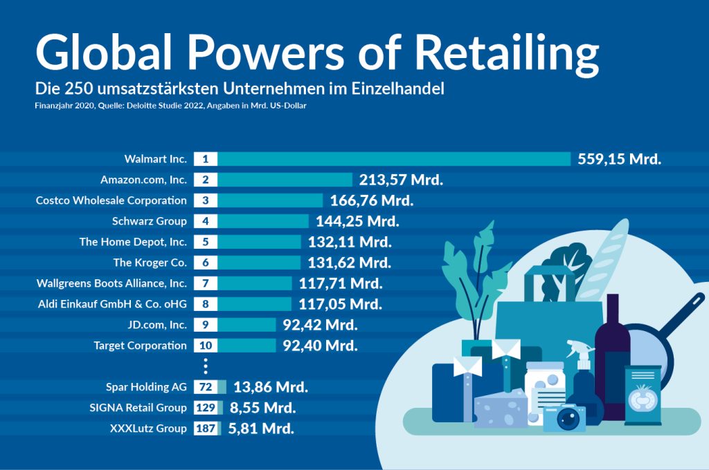 Wirtschaft Zahlen & Fakten der Wirtschaft von florian.fuchs@awg-verlag.at 24. Mai 2022 24. Mai 2022 2 Minuten lesen 69 Einsame Spitze im Einzelhandel Im Rahmen der aktuellen Studie „Global Powers of Retailing 2022“ werden die international 250 umsatzstärksten Unternehmen im Einzelhandel aufgelistet. Trotz der Herausforderungen durch die Corona-Pandemie erwirtschafteten diese im Finanzjahr 2020 gemeinsam 5,1 Billionen US-Dollar Umsatz. Angeführt wird die Liste unverändert mit weitem Abstand von Walmart. Der Online-Händler Amazon verteidigt erfolgreich Platz 2, gefolgt von Costco auf Platz 3 des Rankings. Mit Spar, SIGNA Retail und XXXLutz schafften es auch drei heimische Unternehmen ins Ranking. Die Spar Holding AG klettert mit einem Gesamtumsatz von rund 13,9 Milliarden US-Dollar von Platz 85 im Vorjahr auf Platz 72 im aktuellen Ranking. Die SIGNA Retail Group erreicht Rang 129, die Welser XXXLutz Group ist auf Platz 187 zu finden. Im Norden geht die e-Post ab Ein ziemliches Nord-Süd-Gefälle zeigt die Eurostat-Statistik zur europaweiten E-Mail-Nutzung. Haben fast unglaubliche 97 Prozent aller NorwegerInnen im Jahr 2021 das Internet zum Senden/Empfangen von E-Mail genützt, so sind es nur 64 Prozent der GriechInnen und gar nur 36 Prozent der TürkInnen. In Österreich lag der Anteil der E-Mail-NutzerInnen bei immerhin 82 Prozent! Unsere Umwelt – unsere Verantwortung Im Auftrag der neu gegründeten Arche Guntrams hat die Marketagent online research GmbH eine umfassende Studie durchgeführt, welche die Meinung der ÖsterreicherInnen zu Natur-, Arten und Umweltschutz beleuchtet. Etwa ein knappes Fünftel der ÖsterreicherInnen glaubt, dass die moderne Technik dafür sorgen kann, Natur und Umwelt intakt zu halten. Dagegen stimmen 61% der Befragten der Aussage sehr oder eher zu, dass eine „radikale Kehrtwende in unseren Lebensgewohnheiten und Ansprüchen“ angesagt ist. An der Spitze der „effektivsten alltäglichen Handlungen“ stehen Plastik vermeiden, regional einkaufen und Müll vermeiden oder getrennt entsorgen. Für jeden Vierten der ÖsterreicherInnen sollte der Konsum eingeschränkt werden. FaktenUpdateWirtschaft 0 FacebookTwitterPinterestEmail voriger Beitrag Gutes Personal für gute Arbeitsplätze nächster Beitrag Zukunfts-Check Ähnliche Artikel Zahlen & Fakten der Wirtschaft 27. Januar 2023 Zahlen & Fakten der Wirtschaft 21. Dezember 2022 Zahlen & Fakten der Wirtschaft 16. Dezember 2022 Zahlen & Fakten der Wirtschaft 14. Dezember 2022 Wie es den Unternehmen im permanenten Krisenmodus geht 22. November 2022 Zahlen & Fakten der Wirtschaft 2. November 2022 ABC Fliesen- und Bauwaren 31. Oktober 2022 Zahlen & Fakten der Wirtschaft 12. Oktober 2022 „Grüne“ Termine für Unternehmer 21. September 2022 Kreislaufwirtschaft ist mehr als Recycling 13. September 2022
