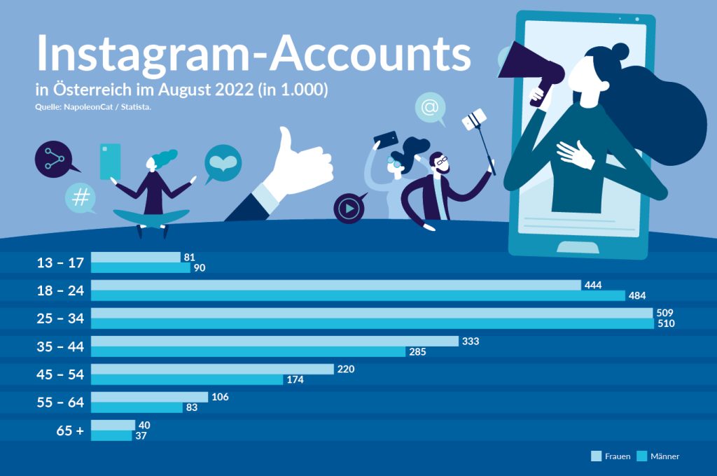 Wirtschaft Zahlen & Fakten der Wirtschaft von florian.fuchs@awg-verlag.at 12. Oktober 2022 12. Oktober 2022 2 Minuten lesen 98 Gekaufte Freu(n)de Serien- & Musikstreaming, Carsharing, Kochboxen, Tageszeitungen und Magazine – für eine große Auswahl an Services und Produkten gibt es bereits die Möglichkeit, ein Abonnement abzuschließen. Inwieweit Abos in Anspruch genommen werden und worauf die Konsument*innen dabei besonders achten, untersucht Marketagent in einer aktuellen Studie unter 1.000 Personen. Es zeigt sich: Über 80% der Österreicherinnen und Österreicher haben bereits mindestens ein Abo abgeschlossen, durchschnittlich bezieht jeder Haushalt drei Abos. Burgenland führt beim Fahren Ein leistungsfähiges Öffi-Netz und der kontinuierliche Ausbau der Radwege sind gute Gründe dafür, dass in Wien mit Abstand die wenigsten Kilometer mit dem Auto zurückgelegt werden (pro Jahr und Haushalt). Hinter der Bundeshauptstadt folgen die Vorarlberger und Tiroler Haushalte, im Burgenland werden dagegen die meisten Kilometer pro Jahr und Haushalt gefahren. Immer mehr Knoten im Netz Instagram hatte im August 2022 laut der Quelle NapoleonCat mehr als 3,2 Millionen Nutzer in Österreich. Das entspricht über einem Drittel der Gesamtbevölkerung. Damit hat der Onlinedienst seine Nutzerschaft in Österreich seit 2017 mehr als verdreifacht und sich als führendes soziales Netzwerk hinter Facebook etabliert, das etwa 5,12 Millionen Nutzer:innen aufweist. FaktenUpdateWirtschaft 0 FacebookTwitterPinterestEmail voriger Beitrag Cybercrime: KMU besonders gefährdet nächster Beitrag Investieren in Forschung und Entwicklung Ähnliche Artikel Zahlen & Fakten der Wirtschaft 27. Januar 2023 Zahlen & Fakten der Wirtschaft 21. Dezember 2022 Zahlen & Fakten der Wirtschaft 16. Dezember 2022 Zahlen & Fakten der Wirtschaft 14. Dezember 2022 Wie es den Unternehmen im permanenten Krisenmodus geht 22. November 2022 Zahlen & Fakten der Wirtschaft 2. November 2022 ABC Fliesen- und Bauwaren 31. Oktober 2022 „Grüne“ Termine für Unternehmer 21. September 2022 Kreislaufwirtschaft ist mehr als Recycling 13. September 2022 Zahlen & Fakten der Wirtschaft 30. August 2022