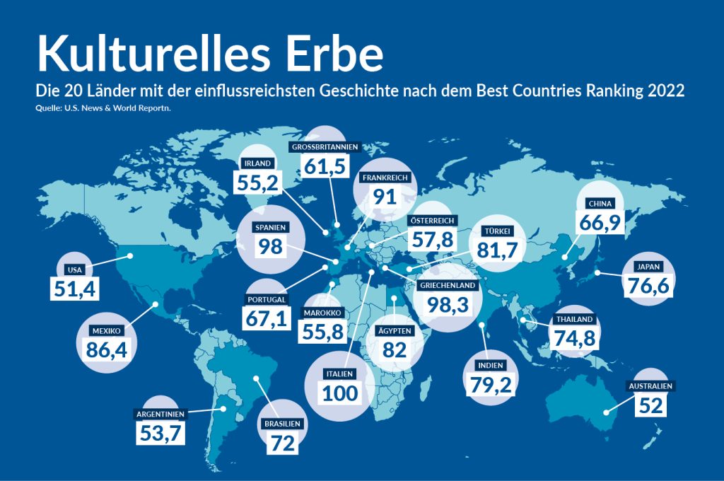 Wirtschaft Zahlen & Fakten der Wirtschaft von florian.fuchs@awg-verlag.at 16. Dezember 2022 16. Dezember 2022 3 Minuten lesen 213 Große Unterschiede beim Tempo im Internet Laut aktuellen Messungen von speedtest.net findet sich das schnellste Internet in Singapur: In dem südostasiatischen Land betrug die durchschnittliche Downloadrate der Internetanschlüsse im Oktober 2022 rund 219,6 Megabit pro Sekunde (Medianwert). Auf dem zweiten Platz folgt Chile mit einem Wert von 219,3 Megabit/s.Österreich und Deutschland haben in diesem Bereich großen Aufholbedarf: Unsere Nachbarn belegen mit 77,3 Mbit/s ebenso wie Österreich mit 67,54 Mbit/s nur einen der hinteren Ränge in diesem Ranking. Wie in U.S. News historische Bedeutung bewertet wird Italien gilt als das Land mit dem größten kulturellen Erbe der Welt im Jahr 2022. Italien belegt in der Kategorie „Heritage“ mit einem Score von 100 den ersten Platz im Best Countries Ranking 2022 des Nachrichtenmagazins U.S. News und wird somit als Land mit der einflussreichsten Geschichte der Welt bewertet. Diese Weltkarte zeigt die 20 Länder mit dem größten kulturellen Erbe nach dem Best Countries Ranking des Nachrichtenmagazins U.S. News von 2022. Wie funktioniert das Best Countries Ranking? In einer weltweiten Umfrage zu 85 ausgewählten Nationen wurde unter rund 17.000 Personen die Wahrnehmung eines Landes anhand von 73 Eigenschaften, die mit einer modernen Nation in Verbindung gebracht werden, bewertet. Diese Bewertungen werden in Relation zueinander gesetzt, wobei das beste Land den Wert 100 erhält. Die Ergebnisse wurden in zehn unterschiedlich stark gewichteten Unterkategorien zusammengefasst und beinhalten die Bereiche Politik, Wirtschaft und Kultur. Tempolimit wenig erwünscht Nicht nur wegen der Energiekrise wird aktuell über eine Reduzierung des Tempolimits auf Österreichs Autobahnen diskutiert. Aber wie kommt eine mögliche Geschwindigkeitsbeschränkung bei der Bevölkerung an? Das Online Marktforschungsinstitut Marketagent hat in einer aktuellen Studie über 850 Autofahrer*innen gefragt, wie sie zu dieser Maßnahme stehen und ob die Vor- oder Nachteile bei einem langsameren Fahrtempo überwiegen würden. Das Ergebnis: Mit den aktuellen Tempolimits auf österreichischen Autobahnen sind 71% zufrieden. Derzeit wird jedoch eine vorübergehende Temporeduktion von 130 auf 100 km/h diskutiert, um der momentanen Energiekrise entgegenzuwirken. Ein solcher Schritt findet hierzulande jedoch bei der Mehrheit nicht Anklang. Nur etwa 37% befürworten ein temporäres Tempolimit aufgrund der Energiekrise. Würde eine Temporeduzierung nicht nur für ein paar Monate, sondern permanent eingeführt werden, sinkt die Zustimmung weiter auf 24%. FaktenUpdateWirtschaft 0 FacebookTwitterPinterestEmail voriger Beitrag Zahlen & Fakten der Wirtschaft nächster Beitrag Wir brauchen einen Plan B – wie Blackout Ähnliche Artikel Zahlen & Fakten der Wirtschaft 27. Januar 2023 Zahlen & Fakten der Wirtschaft 21. Dezember 2022 Zahlen & Fakten der Wirtschaft 14. Dezember 2022 Wie es den Unternehmen im permanenten Krisenmodus geht 22. November 2022 Zahlen & Fakten der Wirtschaft 2. November 2022 ABC Fliesen- und Bauwaren 31. Oktober 2022 Zahlen & Fakten der Wirtschaft 12. Oktober 2022 „Grüne“ Termine für Unternehmer 21. September 2022 Kreislaufwirtschaft ist mehr als Recycling 13. September 2022 Zahlen & Fakten der Wirtschaft 30. August 2022