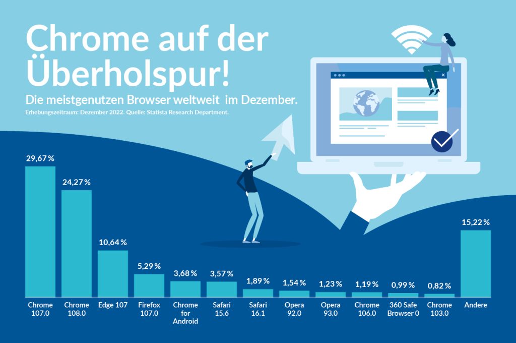 Wirtschaft Zahlen & Fakten der Wirtschaft von florian.fuchs@awg-verlag.at 21. Dezember 2022 21. Dezember 2022 2 Minuten lesen 375 Volkswagen in Front Die Statistik zeigt die größten Unternehmen in Europa nach ihrem Umsatz im Geschäftsjahr 2021/2022. Die Daten beziehen sich auf die aktuellsten verfügbaren Geschäftsjahre (endeten am 31. März 2022 oder vorher). Volkswagen war im betrachteten Zeitraum mit einem Umsatz von rund 295.819,8 Milliarden US-Dollar das umsatzstärkste Unternehmen Europas. Dahinter landen das weltweit größte Mineralöl- und Erdgas-Unternehmen Shell und die niederländische Trafigura-Group. Ösis fliegen oft? Manchmal? Gar nicht? Jede dritte Person in Österreich steigt nicht ins Flugzeug, wie eine repräsentative Umfrage des MARKET-Instituts zeigt. Die Hälfte von Österreichs Bevölkerung ab 16 Jahren fliegt einmal im Jahr oder seltener. Und nur eine von sechs Personen fliegt mehrmals pro Jahr. Chrome glitzert von Platz 1 Die erste Version von Chrome wurde im Jahr 2008 veröffentlicht und war zuerst nur für Microsofts Windows-Betriebssystem verfügbar. Später folgten dann auch Versionen für Linux, macOS, Android und iOS. Im Jahr 2012 konnte Chrome sowohl den Firefox-Browser als auch den Internet Explorer erstmals in puncto Marktanteilen überholen. Mittlerweile ist Chrome unangefochten der meistgenutzte Browser der Welt. Die Daten beziehen sich auf die Nutzung mit Desktop- und Notebook-PCs (ohne Smartphones und Tablets). FaktenUpdateWirtschaft 0 FacebookTwitterPinterestEmail voriger Beitrag Liquiditätsmanagement: Worauf es ankommt nächster Beitrag Umfrage: Work-Life-Balance Ähnliche Artikel Zahlen & Fakten der Wirtschaft 27. Januar 2023 Zahlen & Fakten der Wirtschaft 16. Dezember 2022 Zahlen & Fakten der Wirtschaft 14. Dezember 2022 Wie es den Unternehmen im permanenten Krisenmodus geht 22. November 2022 Zahlen & Fakten der Wirtschaft 2. November 2022 ABC Fliesen- und Bauwaren 31. Oktober 2022 Zahlen & Fakten der Wirtschaft 12. Oktober 2022 „Grüne“ Termine für Unternehmer 21. September 2022 Kreislaufwirtschaft ist mehr als Recycling 13. September 2022 Zahlen & Fakten der Wirtschaft 30. August 2022