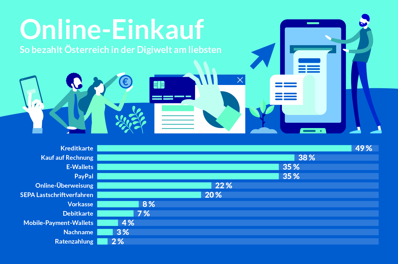 Wirtschaft Zahlen & Fakten der Wirtschaft von florian.fuchs@awg-verlag.at 16. Juni 2021 16. Juni 2021 4 Minuten lesen 102 Boom für Digitale Bezahlung on- und offline Die Corona-Krise hat mit der Beschleunigung der Digitalisierung dazu beigetragen, dass bargeldloses Bezahlen einen Anstieg erlebt. Knapp 40 Prozent der Österreicher geben an, häufiger bargeldlos zu bezahlen als vor der Pandemie. Mehr als die Hälfte will dieses veränderte Bezahlverhalten auch nach der Krise beibehalten. COVID-19 hat die Digitalisierung greifbarer gemacht. Dadurch steigt das Vertrauen der Bürger in digitale Bezahlmethoden. Mobiles Bezahlen via Smartphone steigt zögerlicher In Österreich liegt das Bezahlen via Smartphone mit 12 Prozent (2020) knapp unter dem europäischen Durchschnitt von 14 Prozent. In den skandinavischen Ländern haben Smartphone und Pay-App die Geldbörse bereits großteils ersetzt. Laut E-Commerce-Studie vom Handelsverband Österreich gaben die Österreicher 2019 via Smartphone rund 800 Millionen Euro aus – 2020 bereits 1,2 Milliarden Euro. Das entspricht einem Anstieg um 50 Prozent. Auch der Anteil der Online-Ausgaben via Smartphone stieg und lag 2020 bereits bei 14 Prozent. Die Anzahl der Smartphone-Shopper in Österreich beträgt mittlerweile ganze 2,4 Millionen. Letztlich sind es die Vorteile wie Schnelligkeit und Bequemlichkeit, die den digitalen Bezahlmethoden den Durchbruch ermöglichen. Hinzu kommen eine Sensibilisierung für Hygiene und die Vermeidung von Körperkontakt. Zudem wird das Angebot des E-Commerce immer größer und macht Bezahlen per Mausklick oder Handy zur Gewohnheit. Der vermehrte Einzug der neuen Technik in stationäre Geschäfte fördert die Akzeptanz der digitalen Zahlungsmittel on- und offline. Innovationen der Banken und FinTechs bringen immer ausgefeiltere Lösungen. Kreditkarte in physischer und digitaler Form im Aufwind Die Kreditkarte gilt bei den Österreichern als beliebtestes Zahlungsmittel für Online- und Offline-Zahlungen. Einerseits, weil Kreditkarten weltweite Akzeptanz genießen, andererseits, weil die Zahlung sicher und einfach ist und noch dazu der Benutzer jederzeit Kontrolle über Nutzung und Ausgaben hat. In einer Statista-Befragung wurden rund 4000 Konsumenten aus dem DACH-Raum befragt, welche Bezahlmethoden im letzten Monat für einen Online-Kauf verwendet wurden. Mit 49 Prozent schnitt die Kreditkarte am besten ab, gefolgt vom Kauf auf Rechnung (38 Prozent) wie etwa via Ratepay und E-Wallets wie Paypal mit 35 Prozent. Mobile-Payment-Wallets haben mit vier Prozent noch Luft nach oben. Debitkarten steigen in der Beliebtheit der Österreicher von 22 Prozent (2018) auf 27 Prozent laut jüngster Umfrage. Europaweit ist der Durchschnitt jedoch schon über 30 Prozent geklettert. Heimische Banken registrieren bei ihren Kunden innerhalb der letzten zwei Jahre deutlich mehr bargeldlose Transaktionen, im Durchschnitt stiegen sie um rund 40 Prozent. In Österreich werden jährlich rund zehn Millionen NFC-Bankomatkarten ausgegeben. „Wir steigern das Bruttoinlandsprodukt“ Dass beim weltweiten Bruttoinlandsprodukt (BIP) in den letzten Jahrzehnten gigantische Veränderungen stattgefunden haben, ist vollkommen klar. Ist es doch Ausdruck der wirtschaftlichen Beschaffenheit eines jeweiligen Landes respektive der Welt. Ein Blick auf die Entwicklung seit den 80er-Jahren zeigt ein deutliches Bild: Angesehen von eher kleineren Abnahmen in einzelnen Jahren ist das weltweite BIP im stetigen Wachstum begriffen: Geht man von einem „Start“ mit 11,16 Billionen US-Dollar im Jahr 1980 aus, lag es 20 Jahre später, im Jahr 2000, bei 33,9 Billionen, und weitere 10 Jahre später, anno 2010, bei wiederum fast dem doppelten Wert von 66,14 Billionen US-Dollar. Wieder 10 Jahre später sehen wir erneut eine deutliche Steigerung, wenngleich die Coronakrise punktuell zu einem vergleichsweise riesigen Abfall innerhalb eines Jahres führte: von 2019 (87,35 Billionen US-Dollar) auf 2020 fiel der Gesamtwert um etwa 2,8 Billionen auf 84,54 Billionen US-Dollar. Schenkt man den Prognosen Glauben, so geht es nun wieder steil bergauf – bereits für heuer wird mit einem Anstieg auf 93,86 Billionen gerechnet, im Jahr 2022 soll das weltweite BIP bereits die 100-Millionen-Marke knacken: voraussichtlicher Wert 100,1 Billionen US-Dollar. Trend: Tendenz steigend, denn ebendiese Vorhersage prognostiziert für 2026 stolze 122,36 Billionen US-Dollar. (alle Angaben ca., mit zwei Nachkommastellen) BezahlungBIPFaktenFinanzenInformationnewsUpdate 0 FacebookTwitterPinterestEmail voriger Beitrag Wie sieht Ihre Finanzierungsstrategie aus? nächster Beitrag Weiterbildung, KMUs – und was Corona dabei bewirkt hat Ähnliche Artikel Zahlen & Fakten der Wirtschaft 27. Januar 2023 Zahlen & Fakten der Wirtschaft 21. Dezember 2022 Liquiditätsmanagement: Worauf es ankommt 21. Dezember 2022 Zahlen & Fakten der Wirtschaft 16. Dezember 2022 Zahlen & Fakten der Wirtschaft 14. Dezember 2022 Zahlen & Fakten der Wirtschaft 2. November 2022 Zahlen & Fakten der Wirtschaft 12. Oktober 2022 „Grüne“ Termine für Unternehmer 21. September 2022 Zahlen & Fakten der Wirtschaft 30. August 2022 KMUs und Inflation 12. August 2022